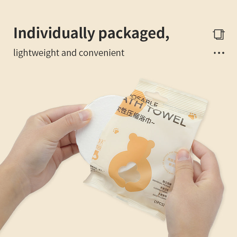 Extra Large Disposable Compressed Bath Towel (70x140cm) – Cute Spring Bear Design – Portable Travel Shower Sheet (Wholesale)